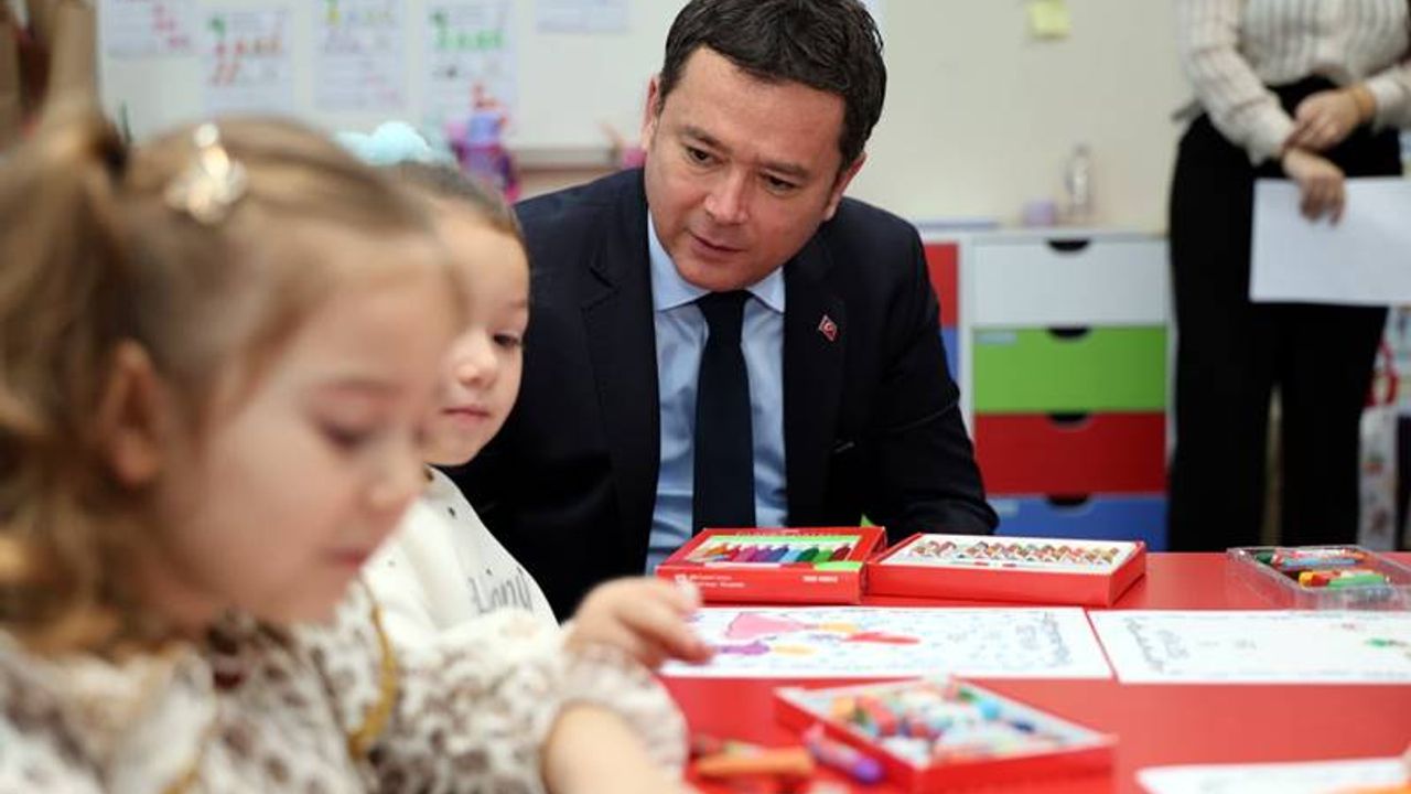 Başkan Erkan Aydın, 24 Kasım Öğretmenler Günü kutlamaları kapsamında Rahmiye Malcıoğlu İlkokulu ile Zübeyde Ana Kreş ve Gündüz Bakım Evi'ni ziyaret etti.