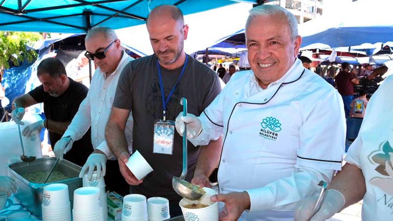 Nilüfer Belediye Başkanı Şadi Özdemir, Ataevler Mahallesi’ndeki aşure dağıtımına katıldı. Vatandaşlara aşure ikram eden Başkan Şadi Özdemir, bolluk ve bereket diledi.
