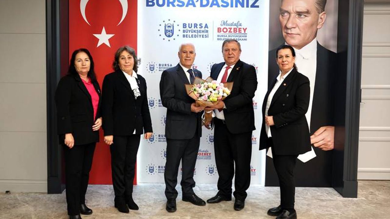 TÜED Uludağ Şubesi Başkanı Kenan Pars, Şube İdare Sekreteri Hacer Budak ve Mali Sekreter Zeliha Dizili ile birlikte Bursa Büyükşehir Belediye Başkanı Mustafa Bozbey’i makamında ziyaret etti.
