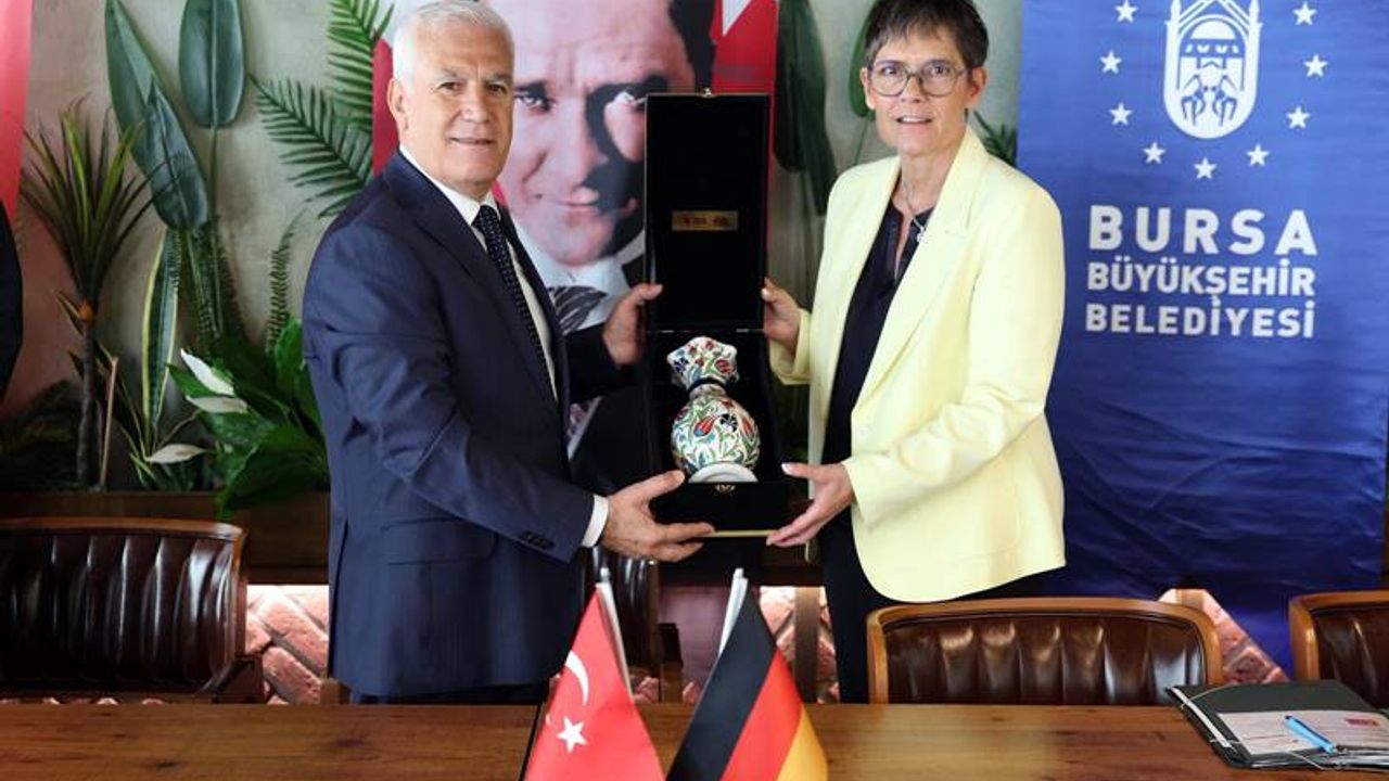 Bursa Büyükşehir Belediye Başkanı Mustafa Bozbey, Almanya’nın Rheinland-Pfalz Eyaleti Ekonomi, Ulaştırma, Tarım ve Bağcılık Bakanlığı Devlet Sekreteri Petra Dick-Walther ve beraberindeki heyetle İnegöl ilçesinde bir araya geldi. Bursa’ya özgü lezzetlerin tadına bakarak hayran kalan heyet, Başkan Mustafa Bozbey tarafından 26-27-28 Eylül tarihlerinde yapılacak Bursa Gastronomi Festivali’ne davet edildi.