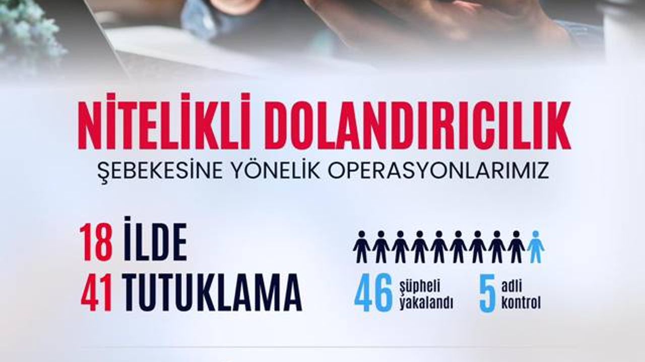 İçişleri Bakanı Ali Yerlikaya, Tekirdağ merkezli 18 ilde düzenlenen operasyonlarda, 537 vatandaşı yaklaşık 1 milyar TL dolandıran nitelikli dolandırıcılık şebekesinin çökertildiğini açıkladı. Operasyonlar sonucunda yakalanan 46 şüpheliden 41'i tutuklandı.