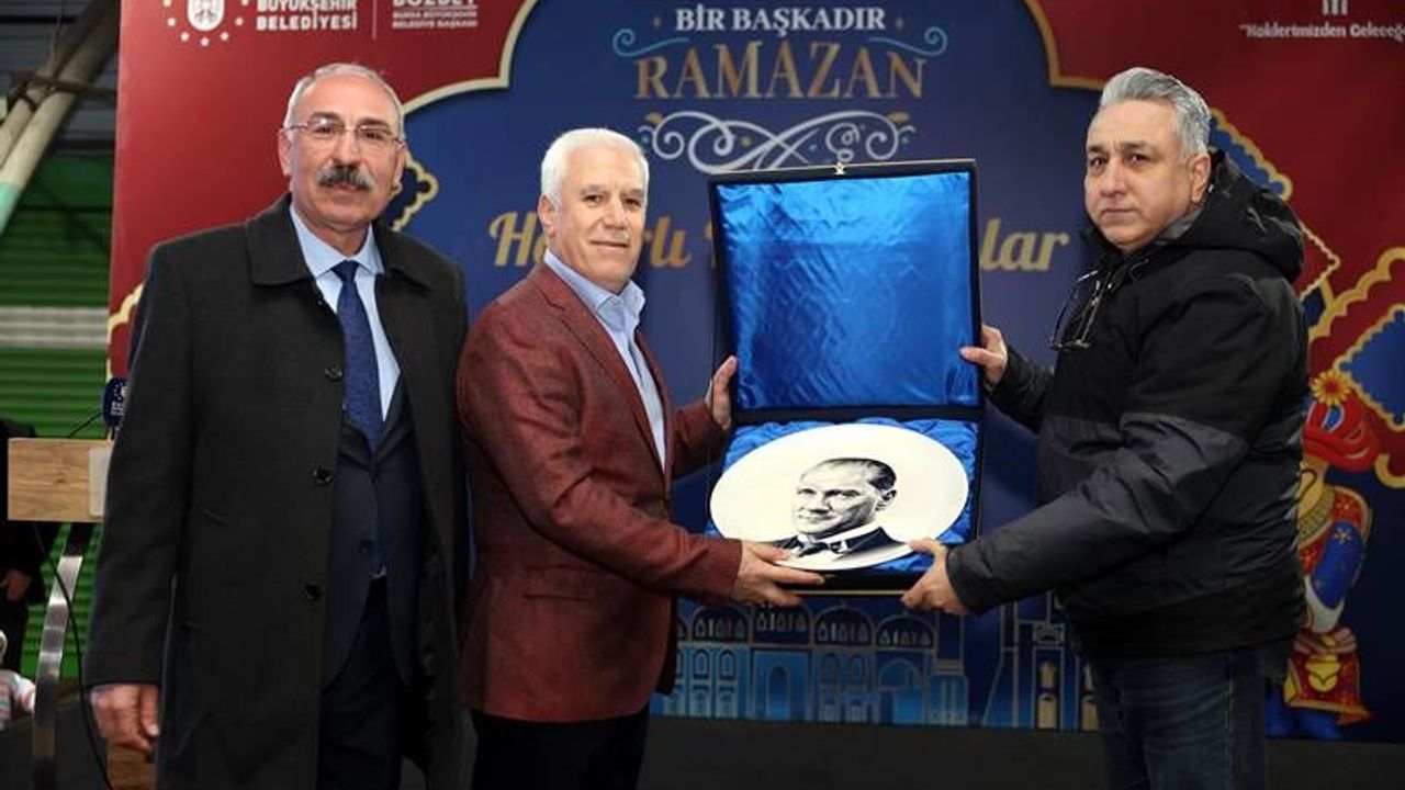 İznik Kapalı Pazar Alanı’nda kurulan dev sofrada konuşan Başkan Mustafa Bozbey, Ramazan’ın bereketini 17 ilçenin tamamına yaydıklarını belirtti. 14 noktada iftariyelik dağıtımı ve 4 sabit iftar noktasındaki yemek ikramlarıyla Bursa genelinde dev bir dayanışma ağı ördüklerini ifade eden Bozbey şunları söyledi: