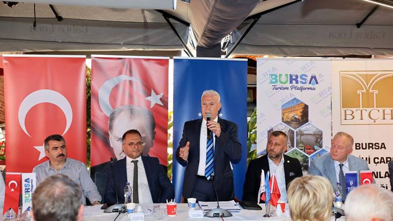 Büyükşehir Belediyesi ve Bursa Turizm Platformu iş birliği ile Bursa Tarihi Çarşı ve Hanlar Birliği ev sahipliğinde düzenlenen Bursa Turizm Platformu Toplantısı’na katılan Başkan Bozbey, Bursa’nın turizm potansiyelinin hak ettiği noktaya taşınabilmesi için kent yöneticileri ve diğer paydaşlara önemli sorumluluklar düştüğünü ifade etti.