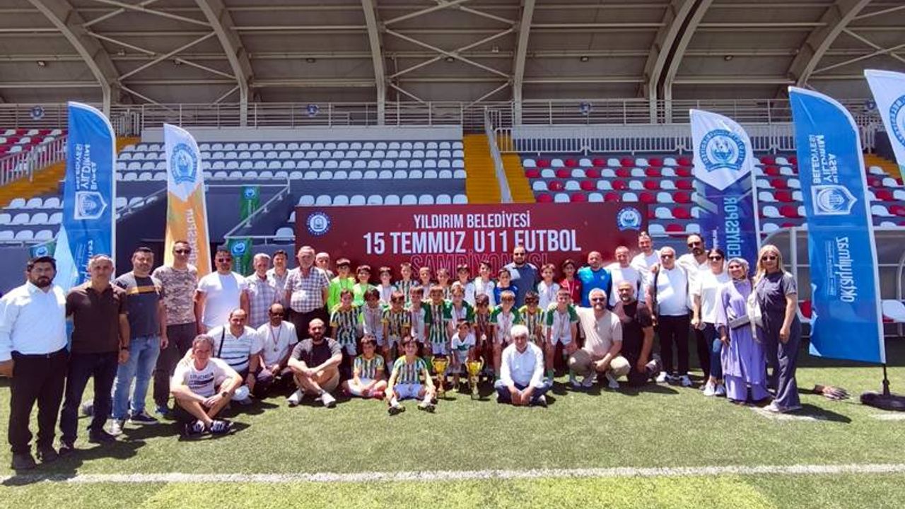 Yıldırım’ı sporda marka kent haline getirecek önemli yatırımları ilçeye kazandıran Yıldırım Belediyesi, gerçekleştirdiği turnuva ve şampiyonalarla da vatandaşları sporla buluşturmaya devam ediyor. 15 Temmuz Demokrasi ve Milli Birlik Günü haftası yaklaşırken, spor ve milli bilinci aynı sahada buluşturan Yıldırım Belediyesi, düzenlediği ‘15 Temmuz U-11 Futbol Turnuvası’ ile ilçede futbol şöleni yaşattı. Vakıf Bera Spor Tesisleri’nde düzenlenen turnuvaya 25 takım ve 400 sporcu katıldı. İki gün süren turnuva kıran kırana maçlara sahne oldu. Kardeşlik, dayanışma ve centilmenlik ruhu içinde geçen mücadelelerin ardından, normal süresi 2-2 biten final maçını penaltı atışlarıyla kazanan Bursaspor şampiyon oldu. Çağlayan Spor’un ikinci, Kestel Genç Yetenekler Spor’un üçüncü olduğu turnuvayı Fethiye İdman Yurdu ise dördüncü sırada tamamladı.
